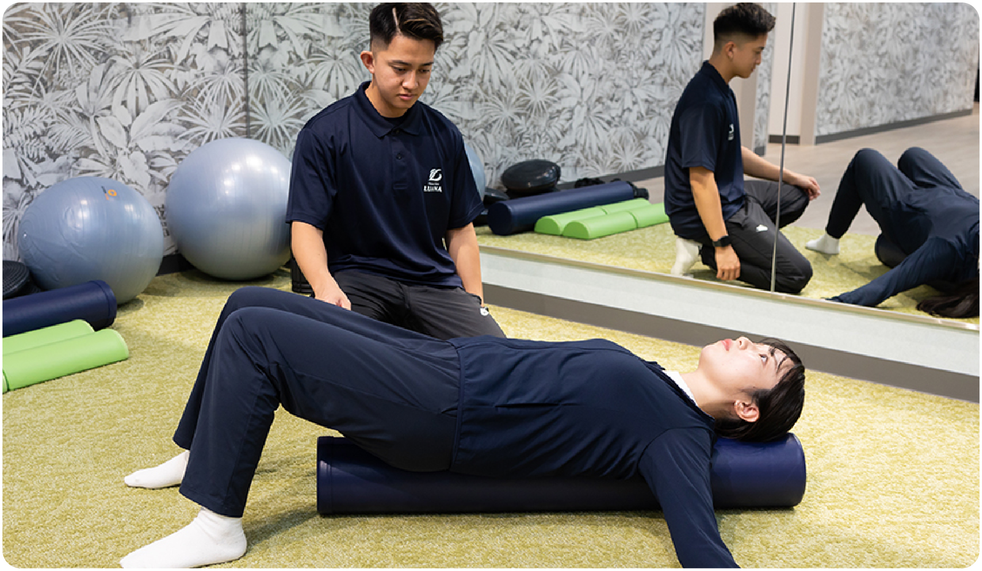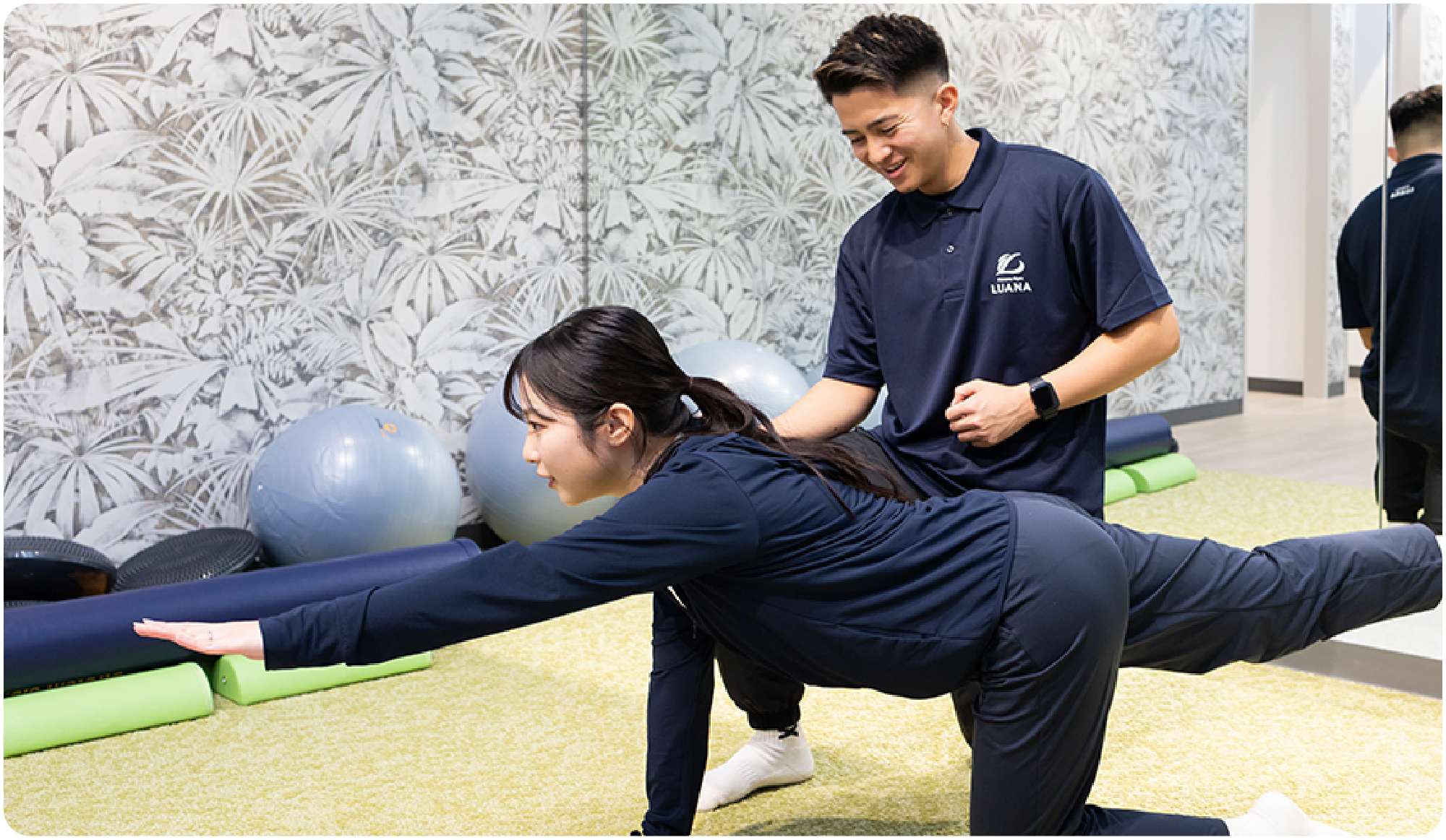 骨盤の歪みに対して、筋肉を動かしていくことで骨盤を整え、維持していくことを目指します。 「整体などで骨盤矯正してもすぐ戻ってしまう」・「姿勢やぽっこりお腹が気になる」そんなお悩みを持つ方にお勧めのコースです。