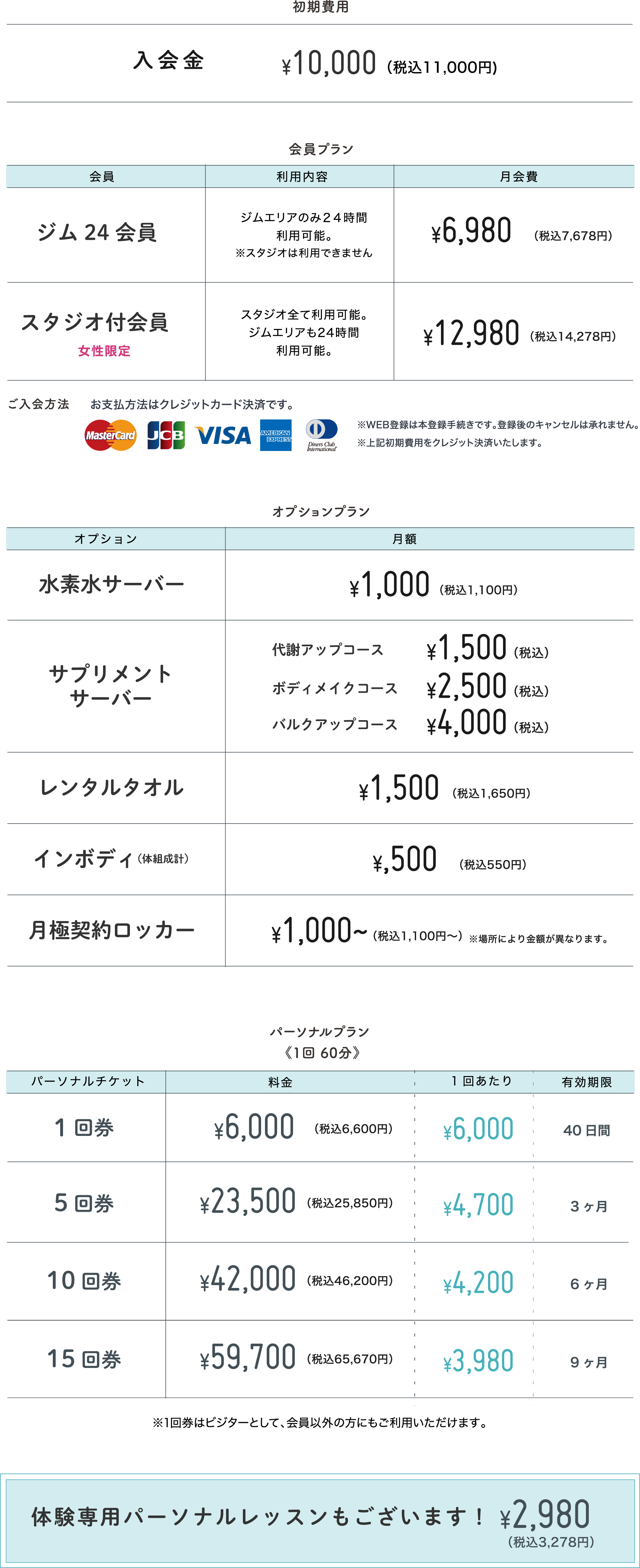 ■5回券:¥23,500(税込) ■10回券:46,200(税込) ■15回券:¥65,670(税込) -